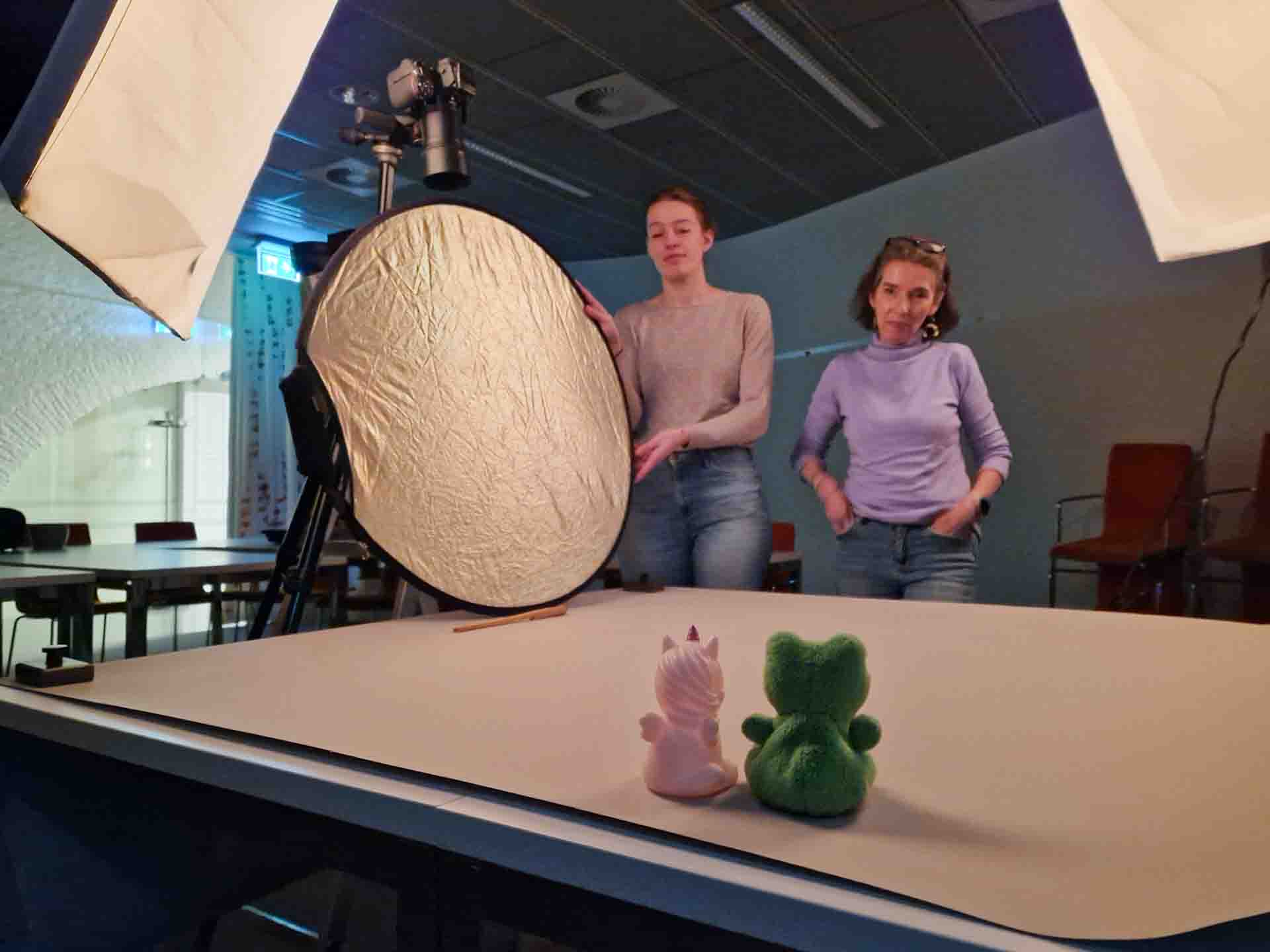 Later in de week zijn ze even mee geweest naar een opdracht op locatie. Er moest een erfgoedstuk worden gefotografeerd voor een publicatie. Even zijn ze de set opgeweest.