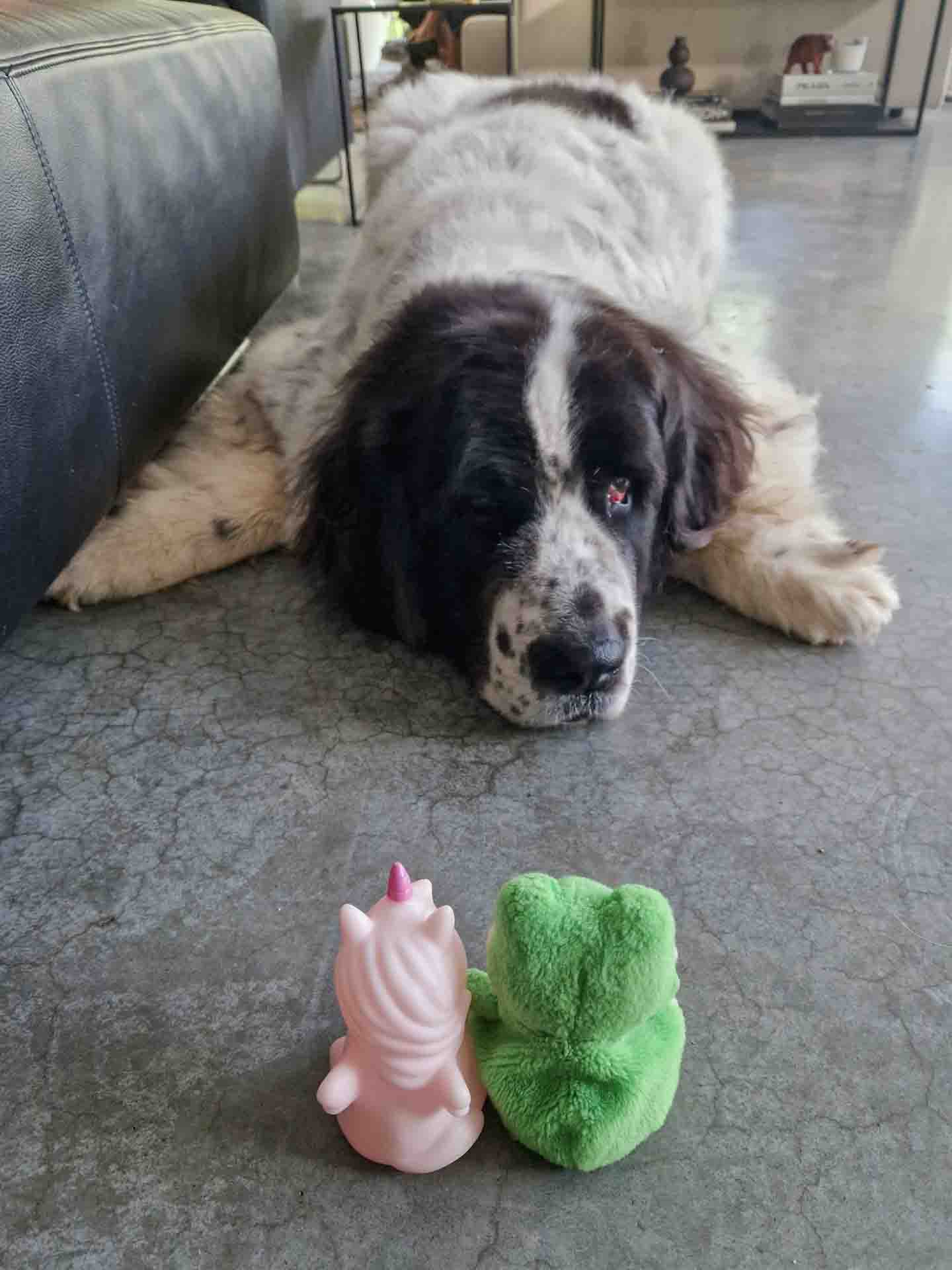 Voor de jongste aanwinst in de familie kochten we een speeldoosje, maar Kikker keek er zó verliefd naar dat we het maar snel hebben weggezet.