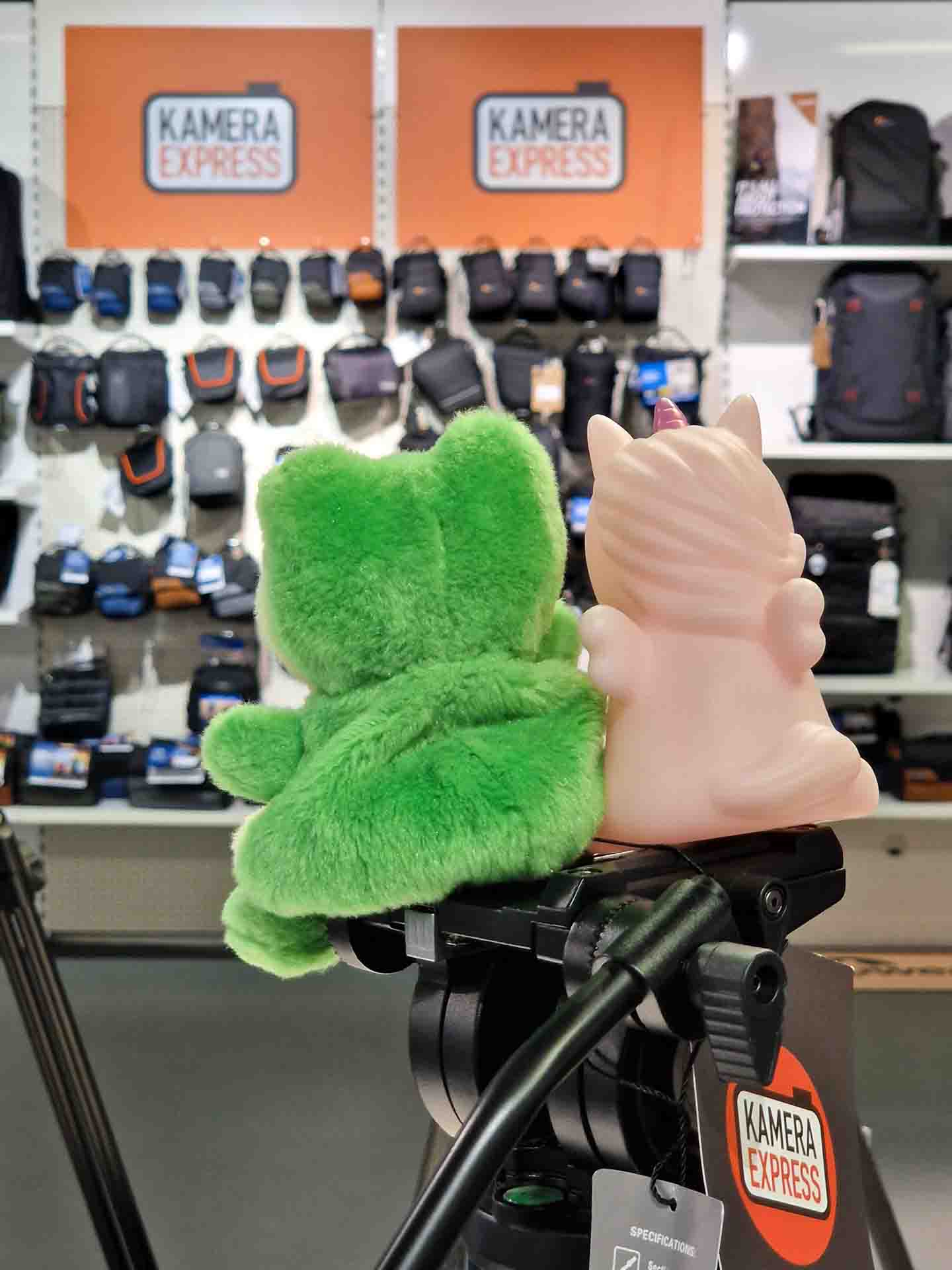 In de fotowinkel haalden we de reproducties op. We mochten er ook nog even rondkijken maar Kikker en Eenhoorn hadden niet zoveel oog voor camera’s. Ze staan liever ervoor dan erachter. Ze vonden alleen de tasjes mooi