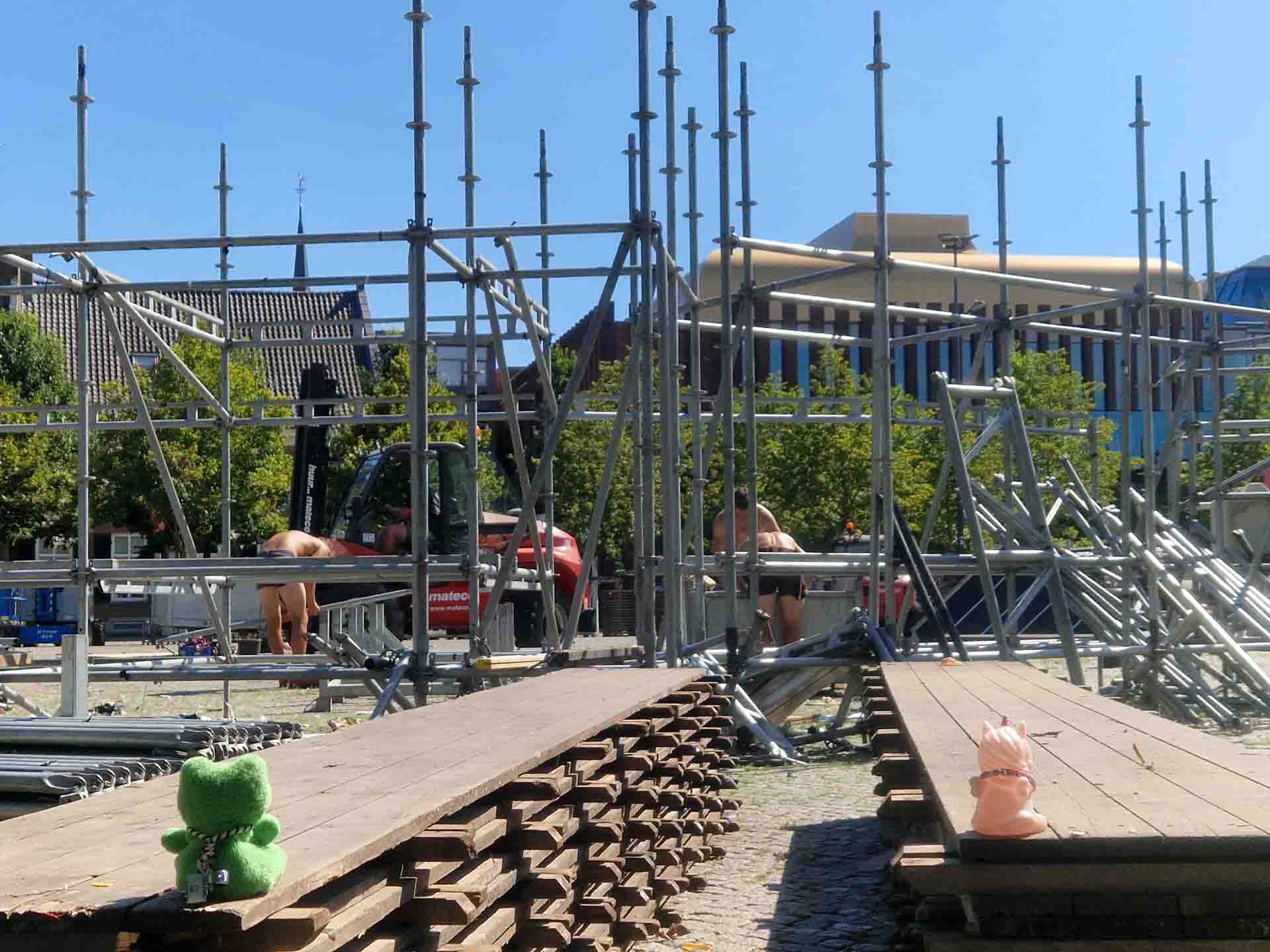 Nadat de Boulevard was afgelopen wilden Kikker en Eenhoorn nogmaals naar de Parade. Misschien konden de bouwers op het plein nog wel een handje hulp gebruiken, dacht Kikker. Maar Tent Paars was al bijna helemaal afgebroken.