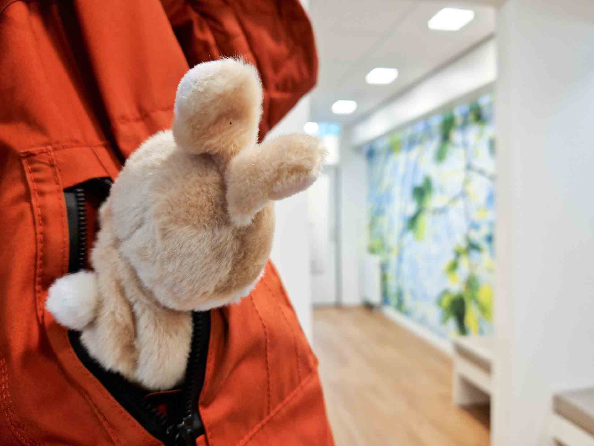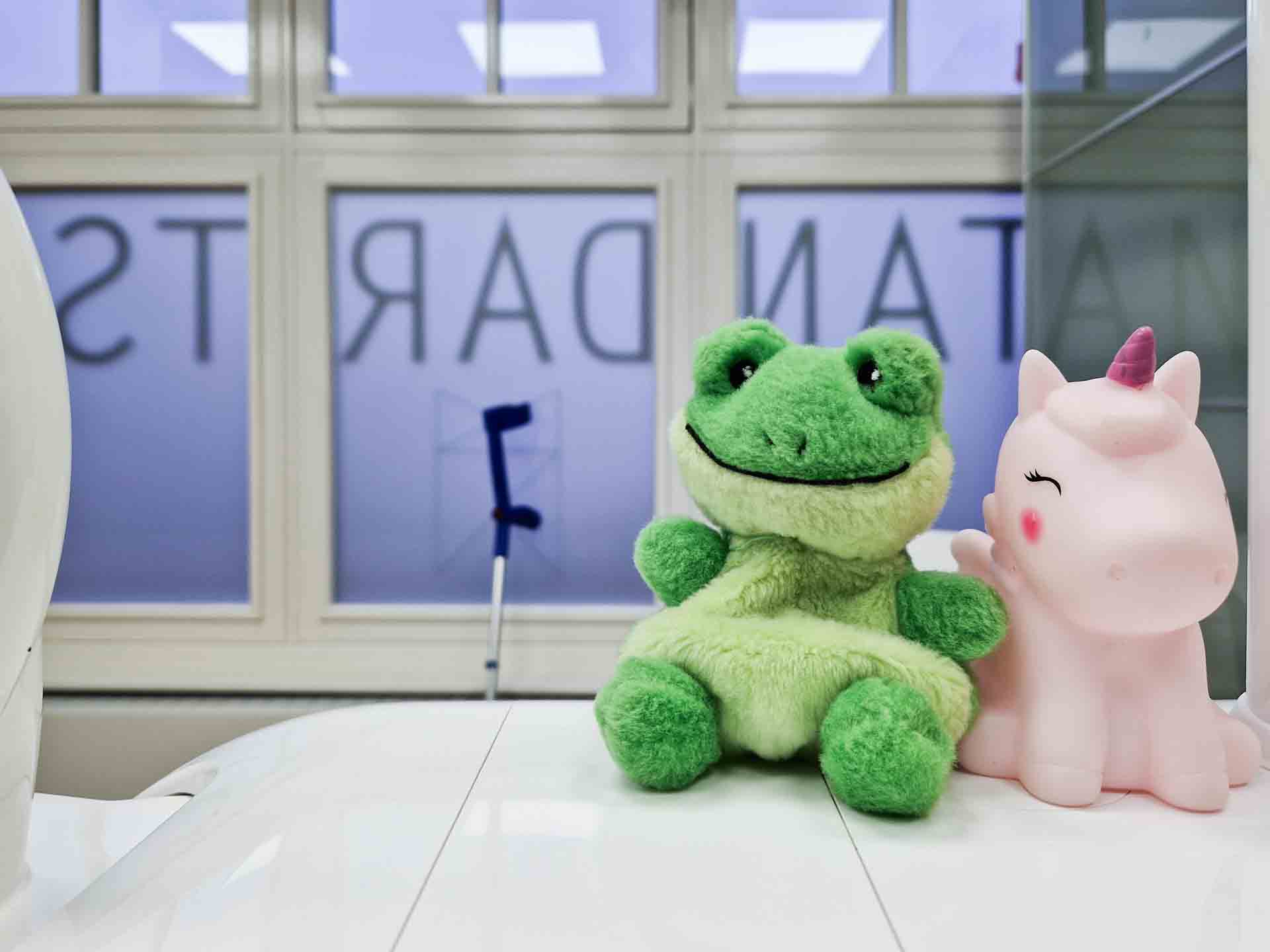 Maar eenmaal binnen vonden ze alles interessant. Die stoel zag er wel heel cool uit. De tandarts kwam ons roepen en vertelde dat Kikker en Eenhoorn gerust mee de behandelkamer in mochten komen.